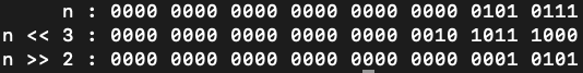 n << 3 과 n >> 2 의 실행결과는 다음과 같다.
