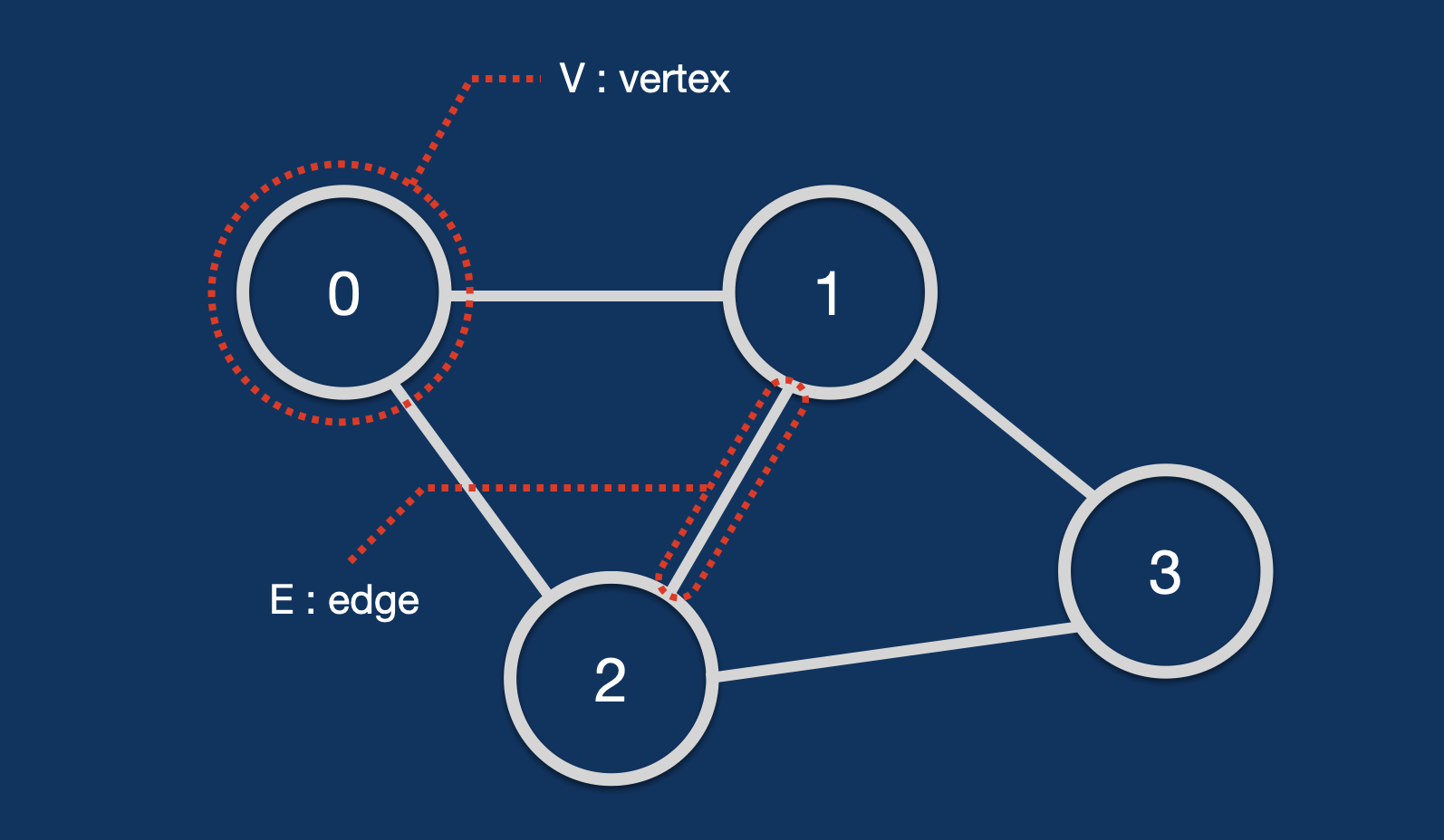 v[2] 는 0,1,3 을 가지는 벡터가 될것이고 이것은 2번 정점에서 0,1,3 정점으로 갈수 있다는 의미이다.