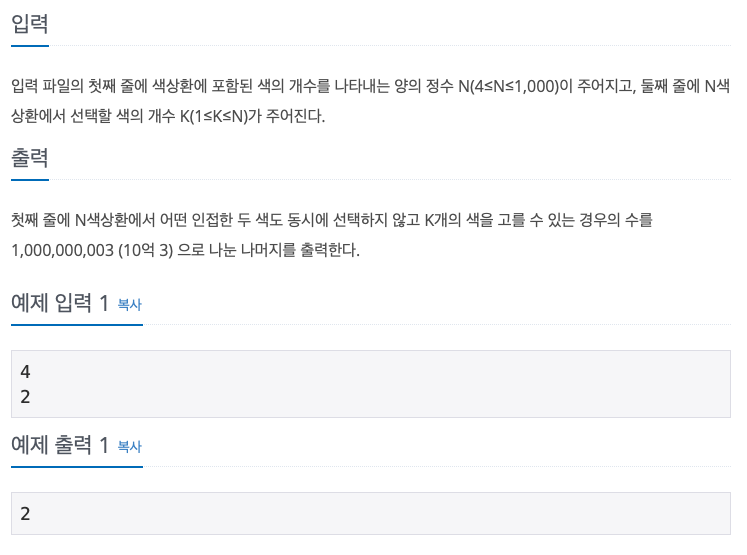 [알고리즘][4][백준_2482][Python3] - 색상환 본문