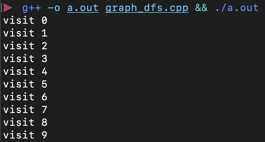 현재 정점에서 갈수 있는 정점들 중 아직 방문을 하지 않은( visited[i] == 0 인 ) 정점들에 대해 재귀로 dfs(i) 를 수행하였다.