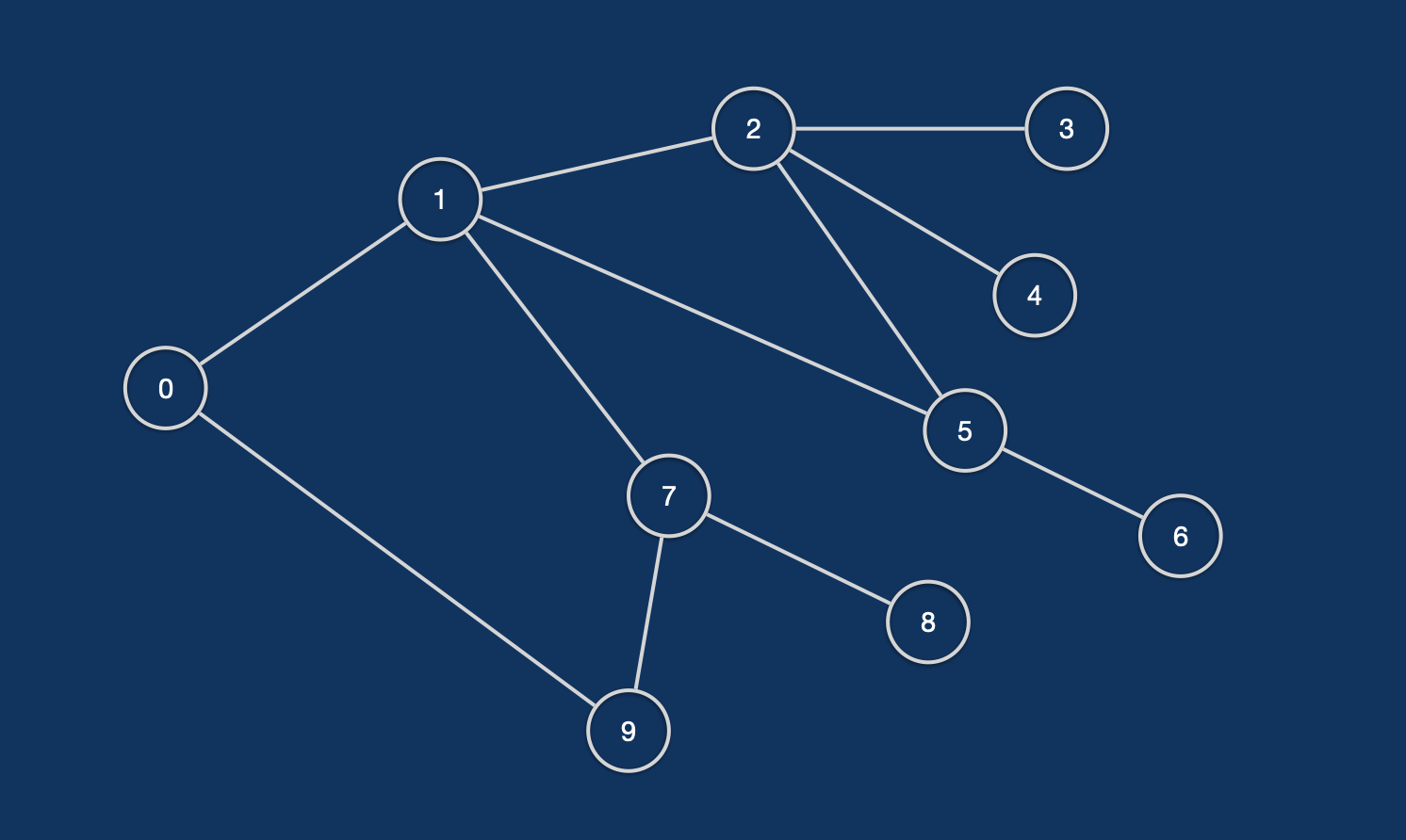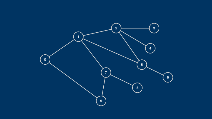 1번에서는 0,2,5,7 번을 방문할수 있는데 이중 0번은 이미 방문 했으므로 제외하고 가장 낮은 번호인 2번부터 방문하고