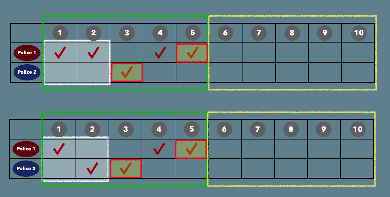 주의해야할 부분은 한 경찰차가 하나의 사건을 처리한후 다시 원래자리로 돌아가는 것이 아니라 그 자리에서 다음사건을 처리하게 되고,