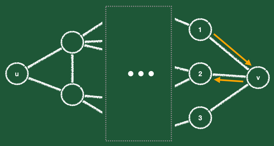 중간의 간선들을 통과하다가 1번 정점에서 v로 들어간 후