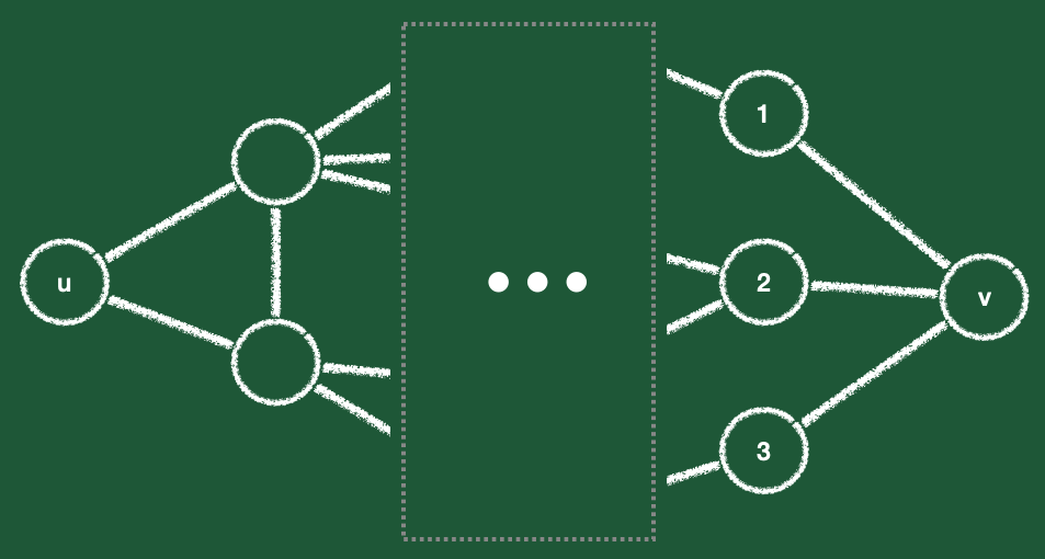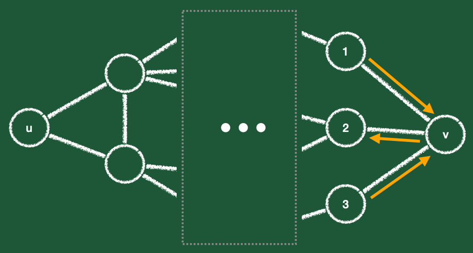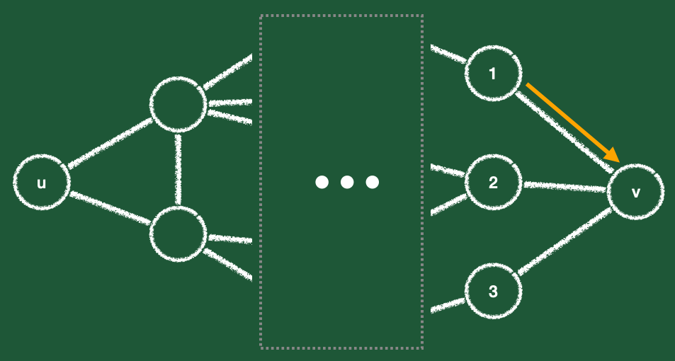 그 이유는 간단하다. 만약 아래와같은 그래프가 있고 u 정점에서 출발해서 v정점을 경유하는 경우라고 생각하자.