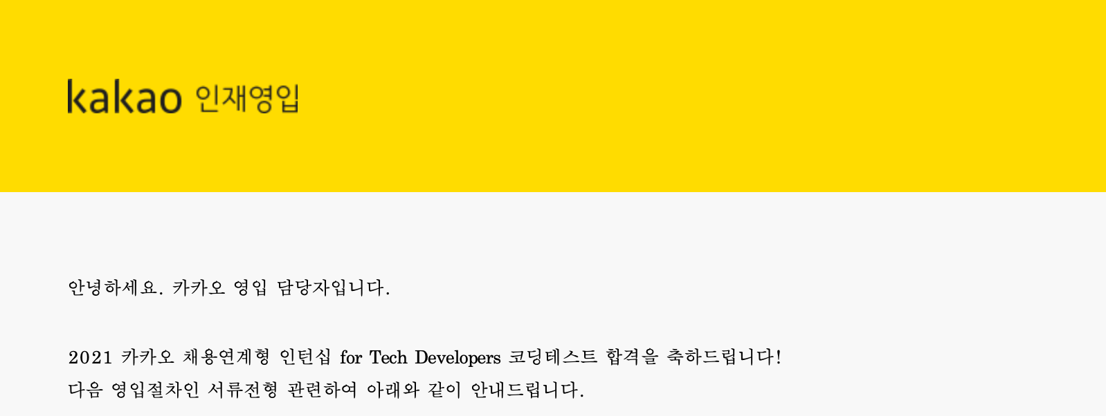 | [4][최종결과] 2021 카카오 채용연계 여름 인턴십 for Tech Developers (2) | 2021.06.09 |