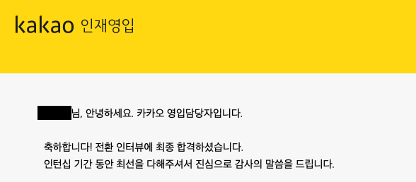 | [4][최종결과] 2021 카카오 채용연계 여름 인턴십 for Tech Developers (2) | 2021.06.09 |