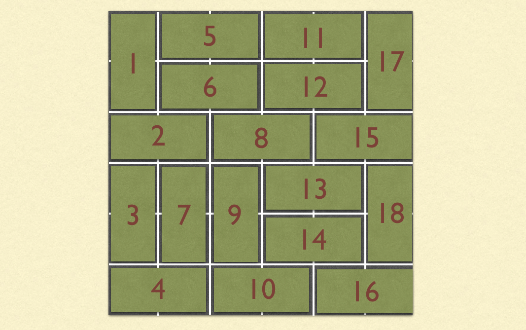 타일 위의 번호는 위 규칙에 따라 채워진 순서이다.
