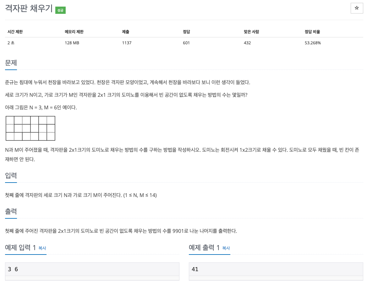 백준저지에는 이미 n x m의 격자상에 특정 블록을 넣어 채우는 경우의 수를 구하는 문제들이 많다.